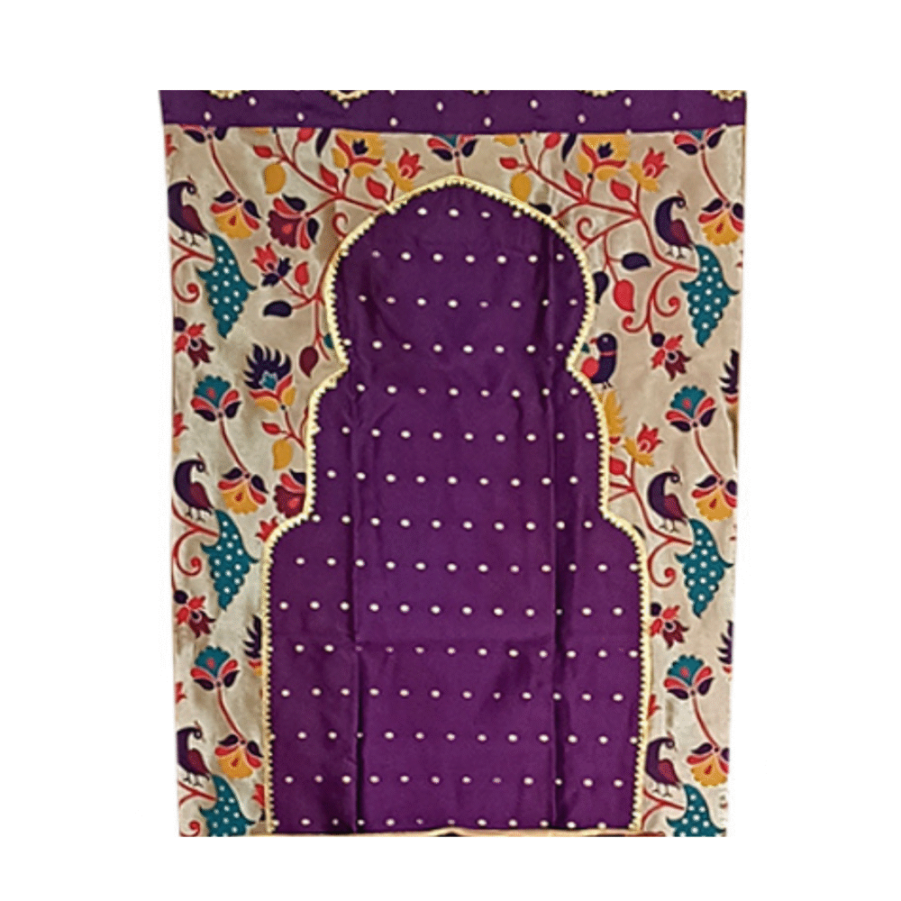 Add a traditional and grand touch to your Ganesh Chaturthi décor with this Paithani Gate Style Backdrop, designed to resemble a festive temple arch. Featuring a vibrant Paithani floral border around a contrasting velvet-style base with mirror dot detailing, this backdrop enhances the presence of your Ganpati idol instantly.