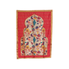 At the center is the Paithani-inspired motif of parrots, peacocks, and blooming florals in vibrant shades, symbolizing celebration and devotion. Whether placed behind a 1–2 ft murti or used in a pooja ghar, it creates a perfect devotional setting.