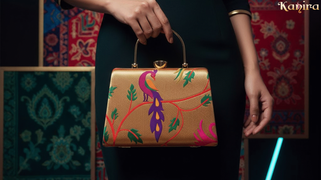 • Artistic Heritage: Paithani-inspired clutches extend the legacy of handloom weaving into contemporary fashion.