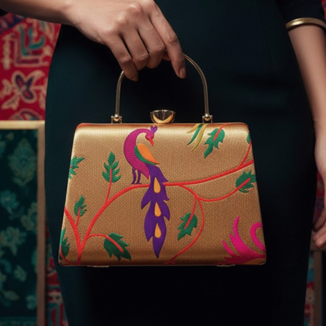 Paithani’s roots trace back to the Satavahana Dynasty, where it was revered as the “queen of silks.” Originating in the town of Paithan, this weaving style quickly became synonymous with royalty and wealth. Historically, Paithani was used to craft opulent sarees, adorned with gold and silver threads. Over time, the versatility of this art form led to its adaptation into jackets, blazers, and other attire, ensuring its relevance in a rapidly changing fashion landscape.